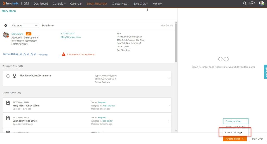 Did you know about Call Logs in Smart Recorder? Came out in version 19.02, if I did my searching correctly. If you already know about them – stop reading! But if you didn’t notice them… keep on reading! The idea is that, when taking a call in Smart Recorder, you have an option besides “Create an Incident” or “Create a Work Order” – you can create a call log for items that don’t need to be tracked as tickets – wrong number or someone just needs an address or something like that.