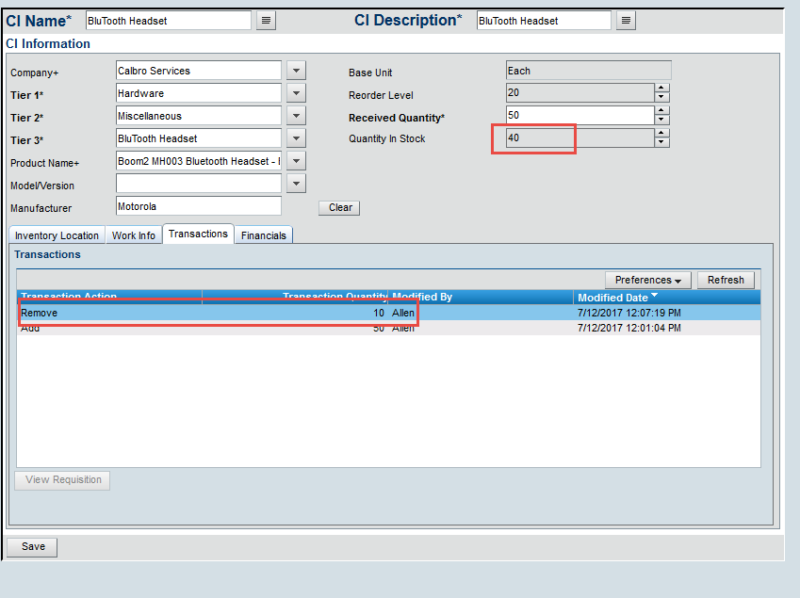 - Note: If you click on the Transactions tab at this point, you’ll see the items have been added.