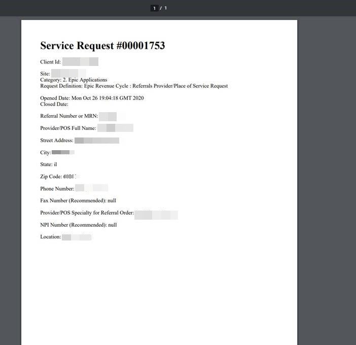 So David Judkins, one of the Remedyforce experts here at RightStar, used VisualForce and Apex to get a PDF printout of a service request – including answers to the questions – for one of our customers. See this screenshot (identifying details are blurred out). This was his first, quick POC – he can do a lot more to the page but wanted to get the concept out there. He also added a button on the Actions menu of Service Requests to handle the printing.